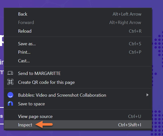 By far the method I use the most to open the DevTools is right-clicking anywhere in the whitespace of a website, then clicking Inspect or Inspect Element.
