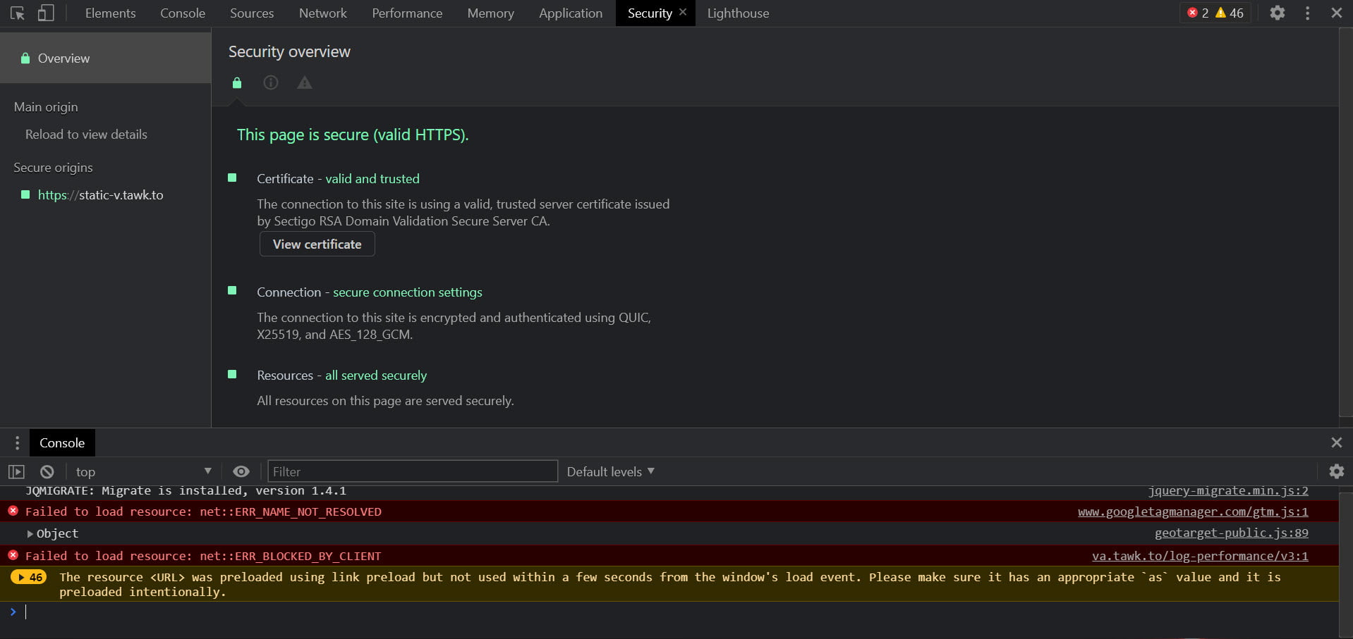 The Security panel of the DevTools is very useful if you want to check if the SSL/TLS certificate on the site you’re visiting is valid, whether or not the connection is secure, and if all resources on the page are being delivered securely. This tool is great for debugging things like HTTPS migrations and quickly fixing those annoying mixed content warnings.