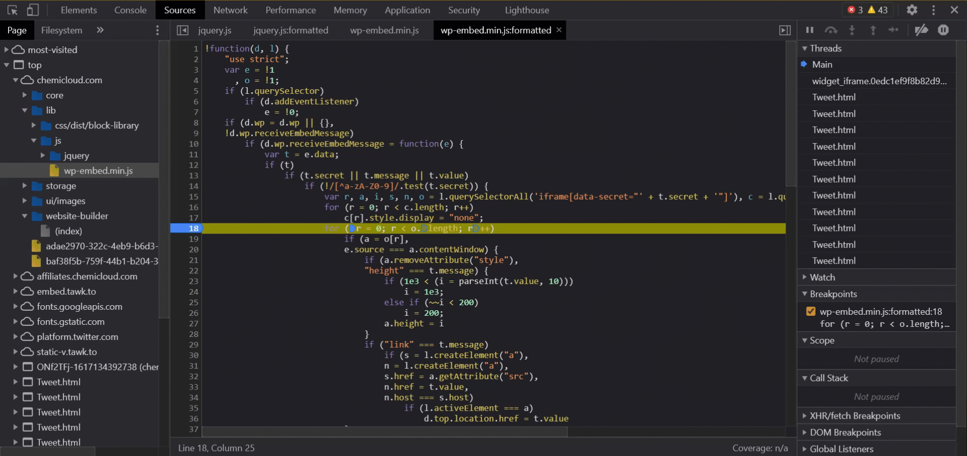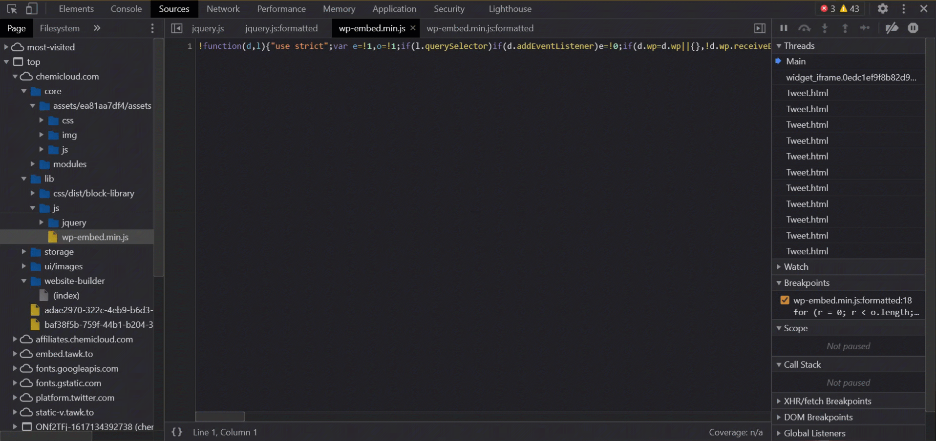 Setting JavaScript breakpoints