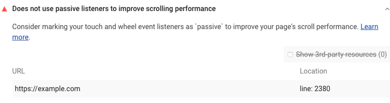 11 Leave a Comment / By Michael Thomas / August 30, 2021 PageSpeed Insights showing a warning the site doesn’t use passive listeners to improve scrolling performance.