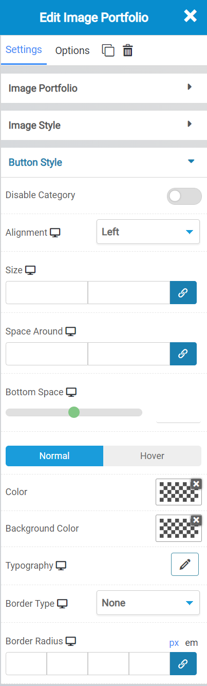 The Button Style settings allow you to adjust the way the Category button in the slider looks.