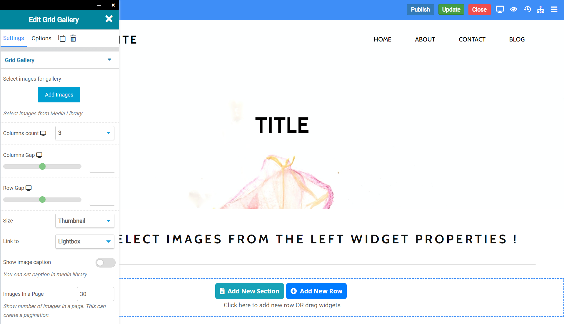 - With “Add Images”, you can select images to show in the Grid Gallery Widget from your Media Library.