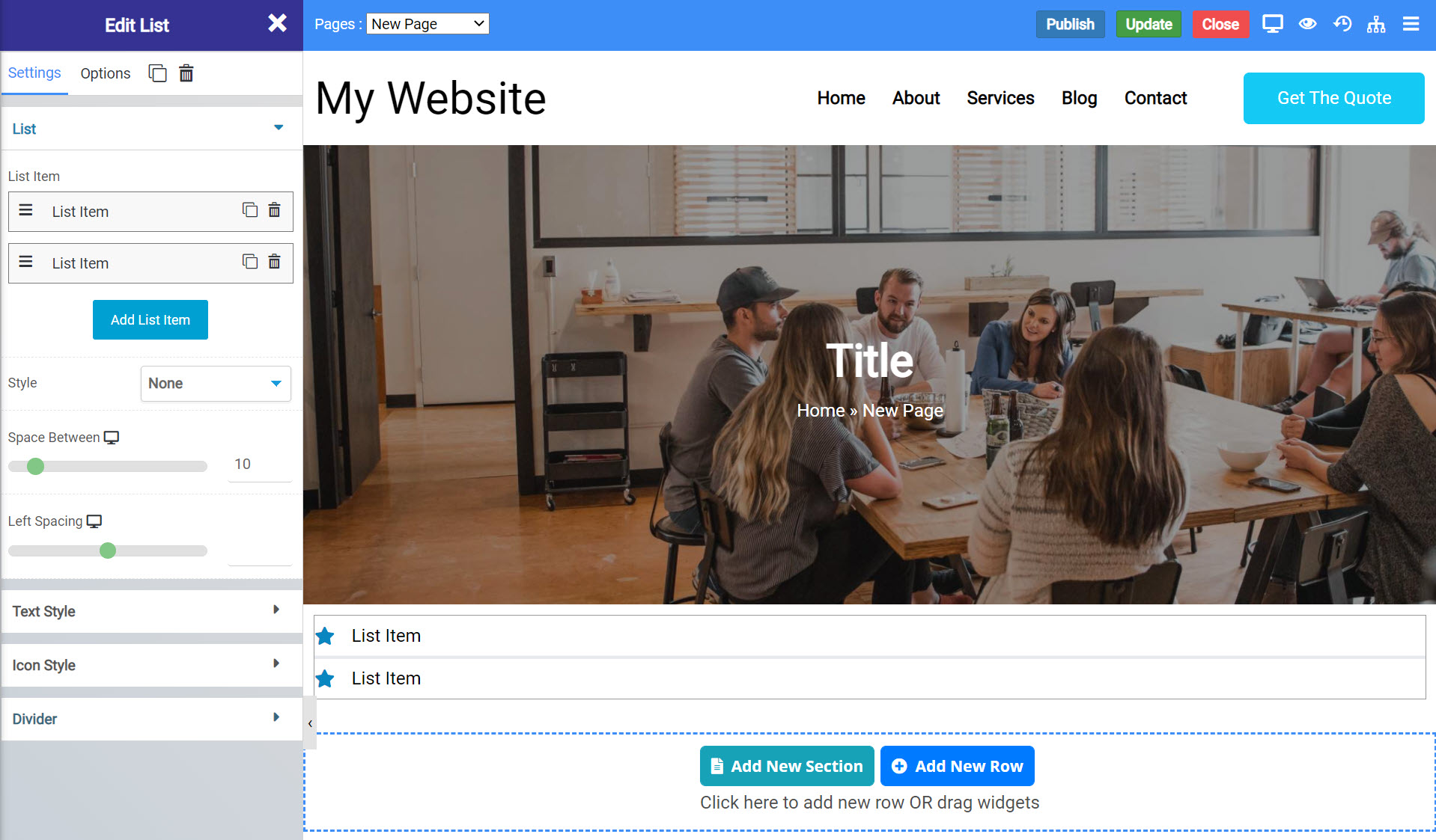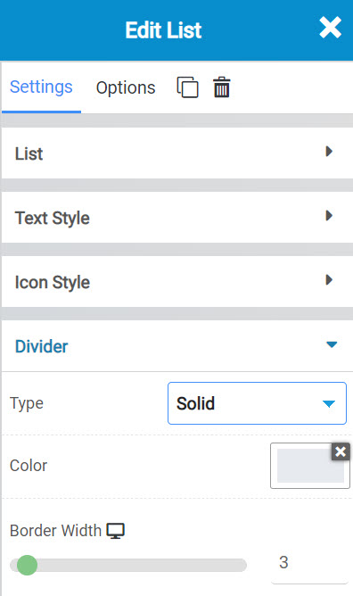 The List Widget is useful when you need to add items to your site in a listed format. You can choose from hundreds of icon options to lead your list as bullet styles, as well.