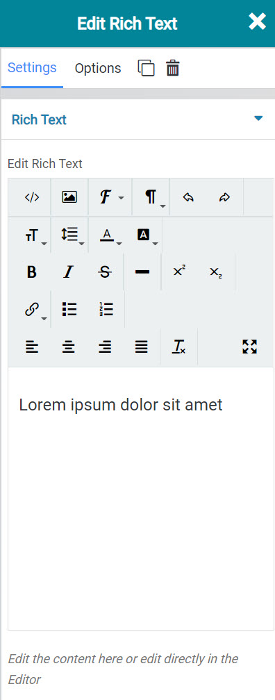 Beneath Edit Rich Text, the “Options” tab allows you to control the following settings: