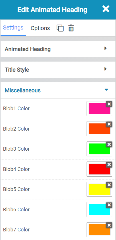 The Miscellaneous setting allows you to adjust settings related to the effect. In the image above, you can see I have the ability to choose the colors of the blobs that are animated onto the heading. This is because I have Blobs as the chosen effect.