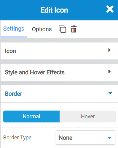 - In the Style and Hover Effects, you can set a Hover or Normal effect for the Icon.