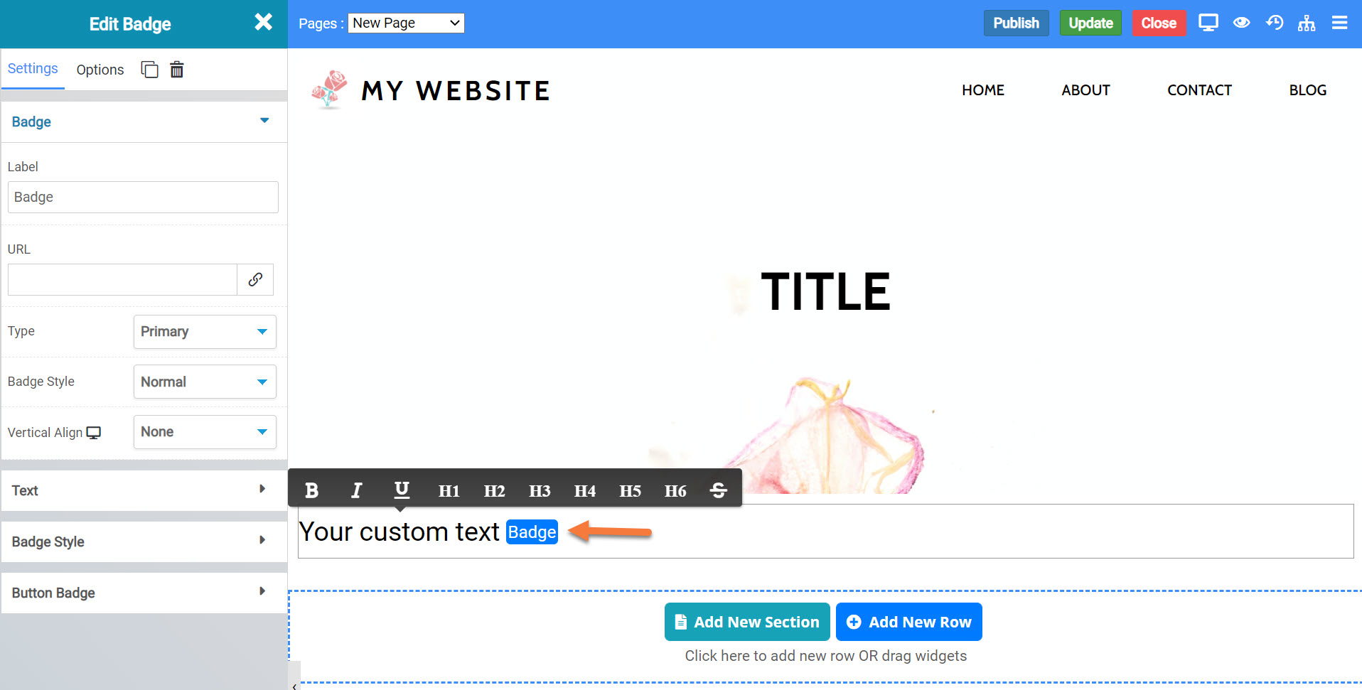 - Where it says “your custom text” you can change the text inside the box adjacent to the badge.