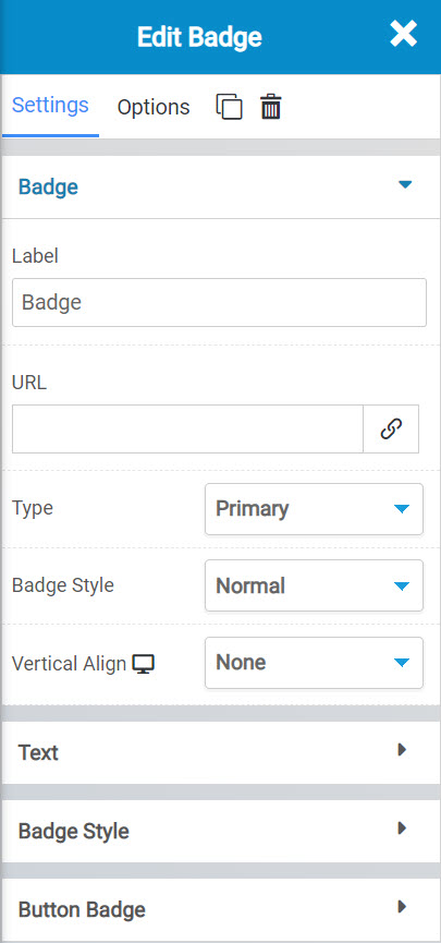 The Text options allow you to change the text that is adjacent to the Badge and the way it looks. You can choose from these settings:
