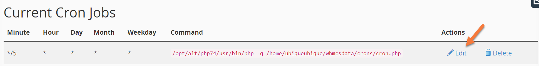 Step 2: When the Cron Jobs page opens, scroll down to the “Current Cron Jobs” section and locate your WHMCS Cron: