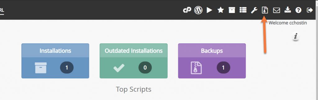 Step 3: From the Softaculous Home Page, click the Backups Icon in the top right corner. You will be taken to your Backups area