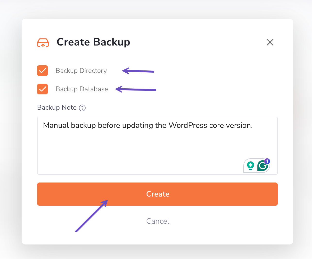 Manual Backup (Local Backup): When you manually create a backup (on-demand), you can choose to back up your website files and database. This backup is stored locally on your Managed WordPress hosting storage.
