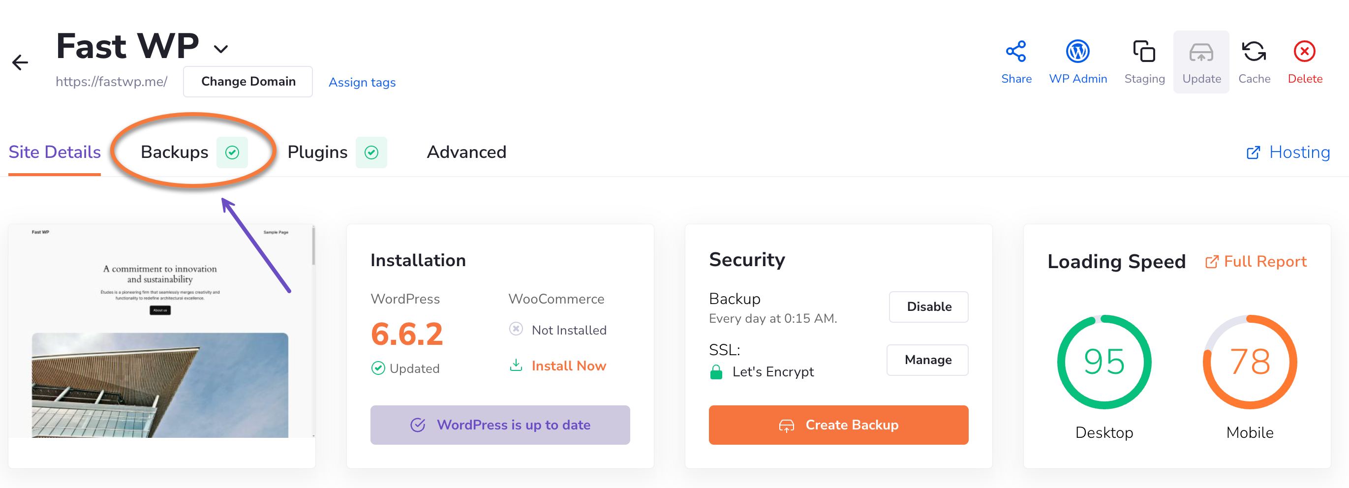 Our cloud Remote Backup feature protects your data with daily, automatic backups you can access anytime using the WordPress Manager. That way, you can worry less about backing up your data and more about customers.