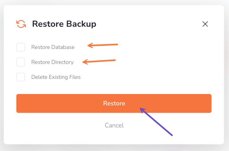 You will receive a confirmation message indicating that the restore is in progress. You can monitor the progress in the Backups section: