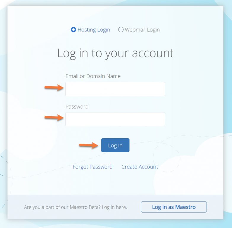 Step 1: Log in to your Bluehost account. You can open up the login page directly by clicking here.