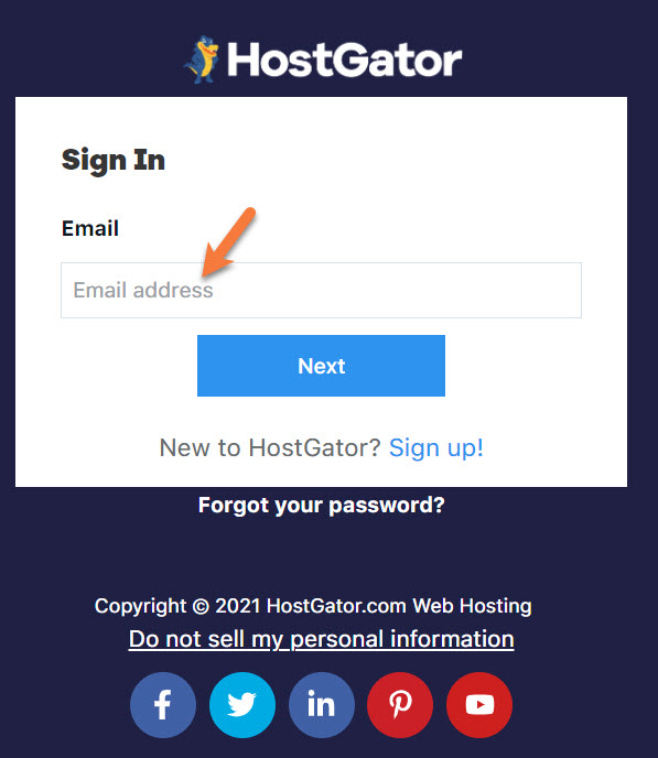 Step 1: Click here to open the HostGator portal. Once open, sign in using your HostGator credentials.