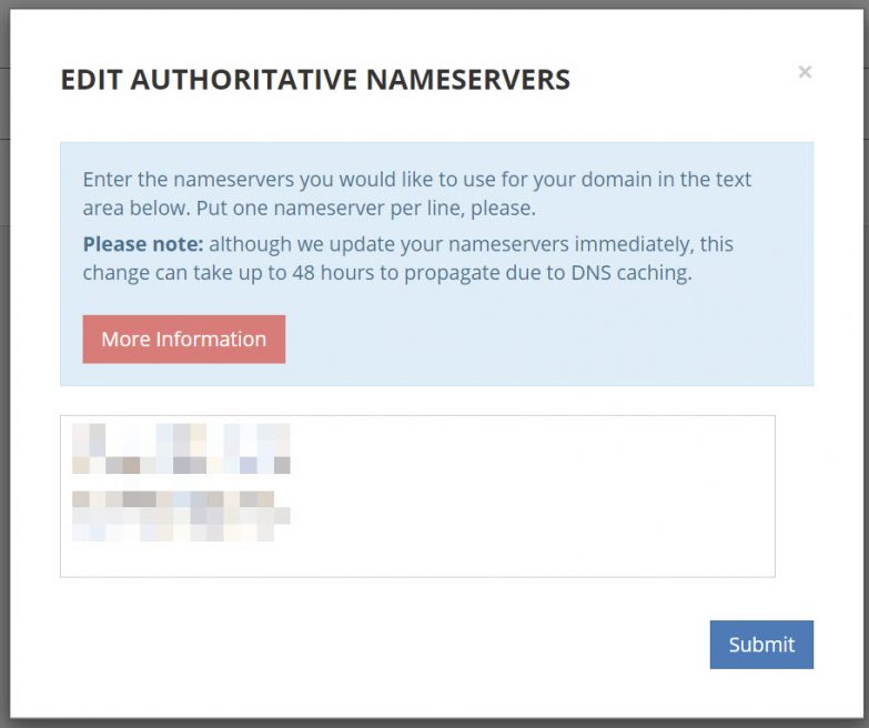 The editor will accept one nameserver per line. When completed, the text box should look similar to the one in the image below: