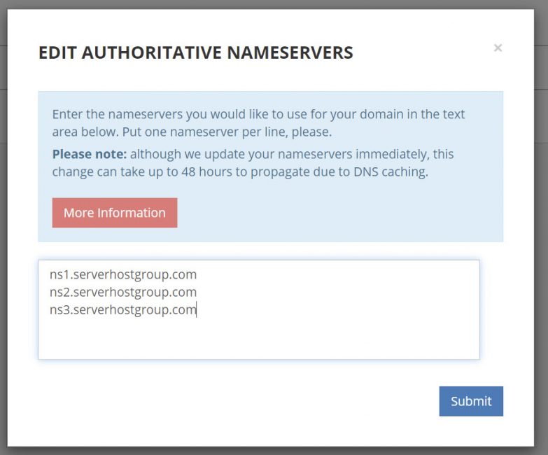To learn more, we published an easy guide explaining how to locate your Nameservers inside of the Client Area here.