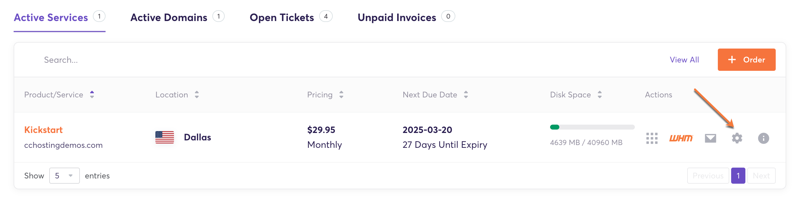 - Look up after the “Active Services” to view your current hosting services.