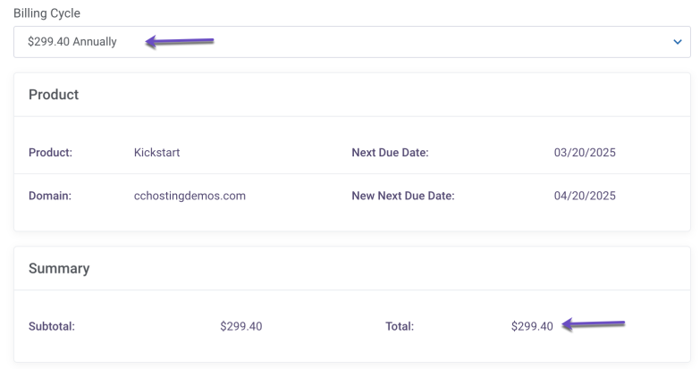 🎉 That’s it! You’ve successfully changed your billing cycle for your hosting service—no support ticket needed!