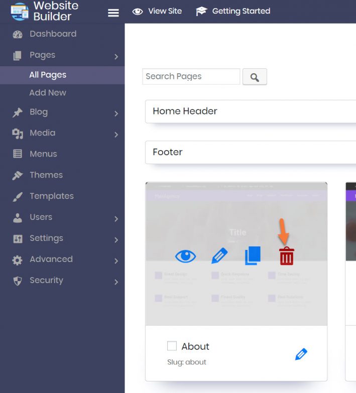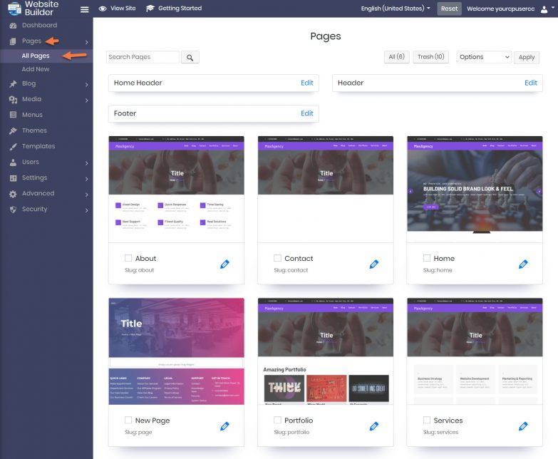 Step 5: Click the Pages utility from the navigation bar on the left side, and click All Pages.