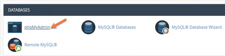 Step 2: Under the Databases section, click phpMyAdmin to open the utility.
