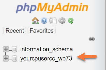 Step3: When phpMyAdmin opens, look for your database on the left: