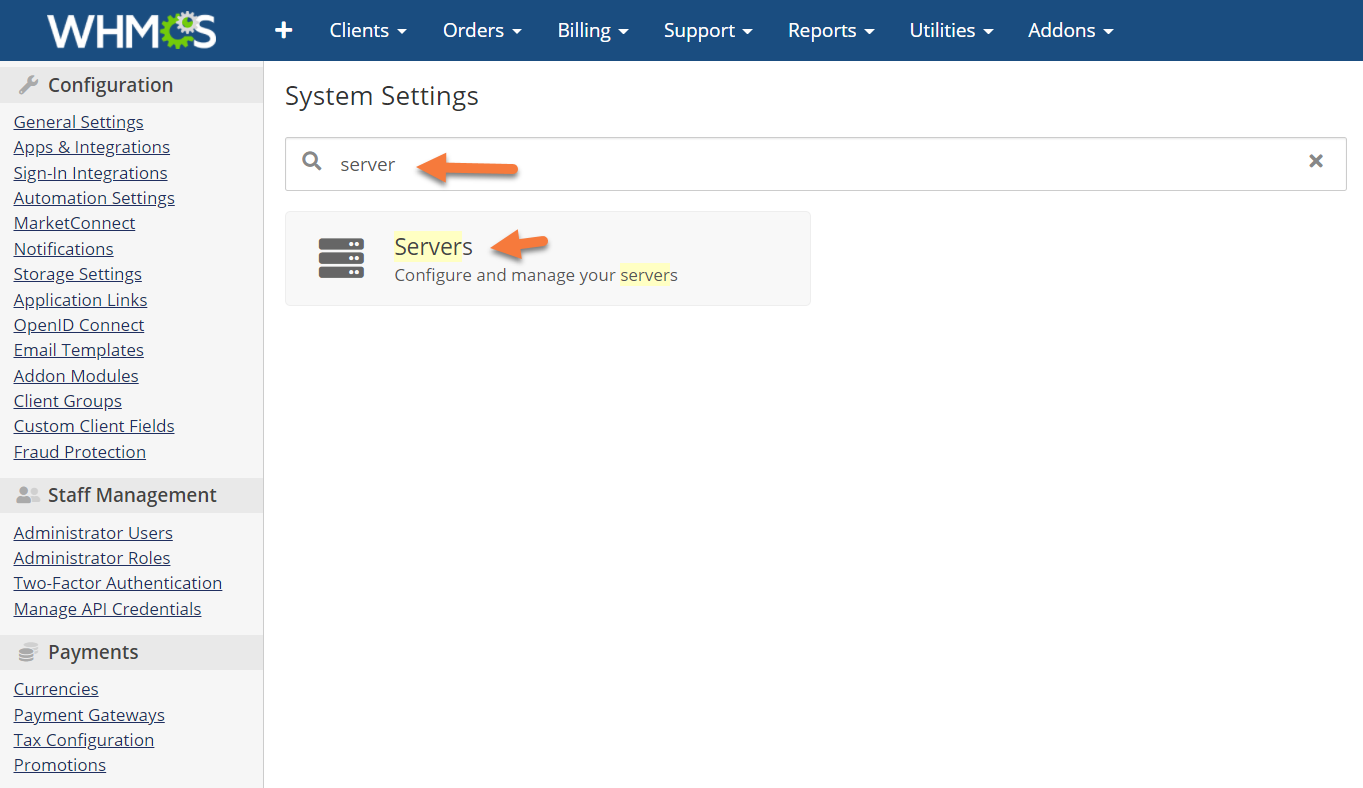 Step 2: When the list of System Settings loads, use the search function at the top of the page to search for ‘servers’.
