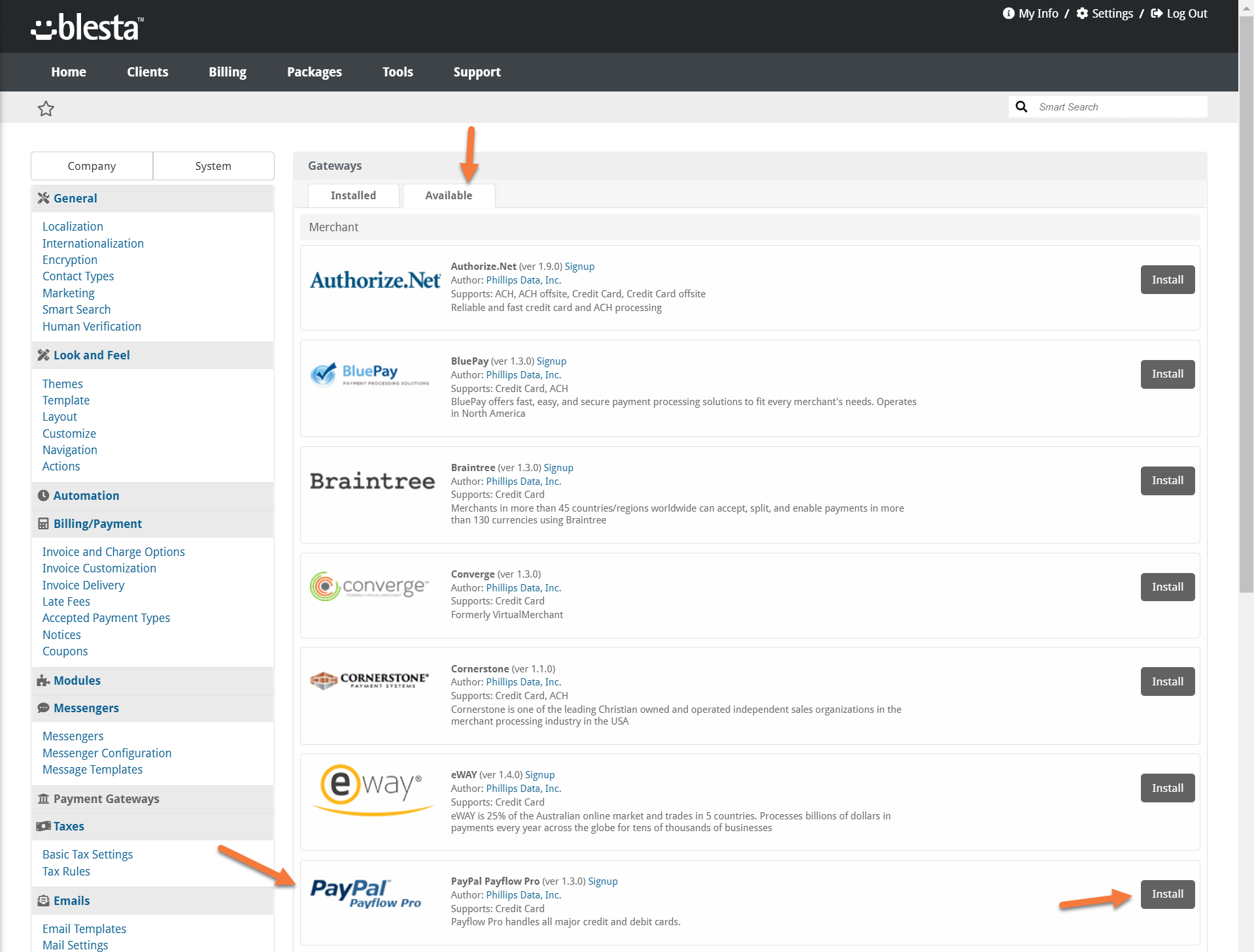 This Knowledge Base article will help you set up Payment Gateways in Blesta so you can capture payments from customers.