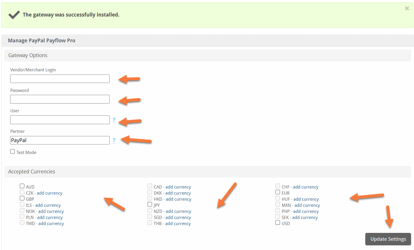 You will be returned to the list of Payment Gateways where you will see the PayPal Payflow Pro module listed.