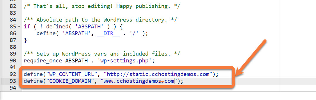 We need to paste a command instructing WordPress that you’ve decided to use a subdomain for all of your static content. This command is below: