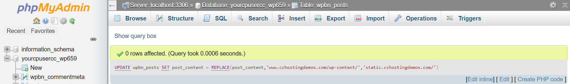 UPDATE wpbn_posts SET post_content = REPLACE(post_content,'www.cchostingdemos.com/wp-content/','static.cchostingdemos.com/')