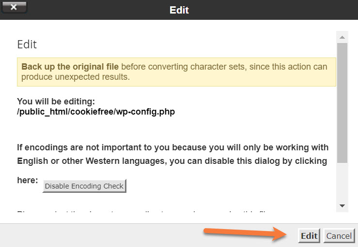 After you’ve made your backup, return to the browser with the File Manager Editor open. If you’ve taken note of your Database Table Prefix, as mentioned above, you can close the editor by clicking the Close button in the top right corner. This will return you to the File Manager. You can also close this tab in your browser.