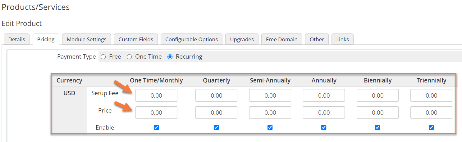 If you are offering hosting, you’re likely offering it on a recurring basis, so be sure to choose Recurring here.