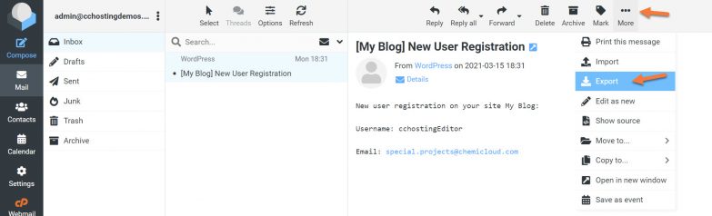 How to Export Emails in Webmail using Roundcube