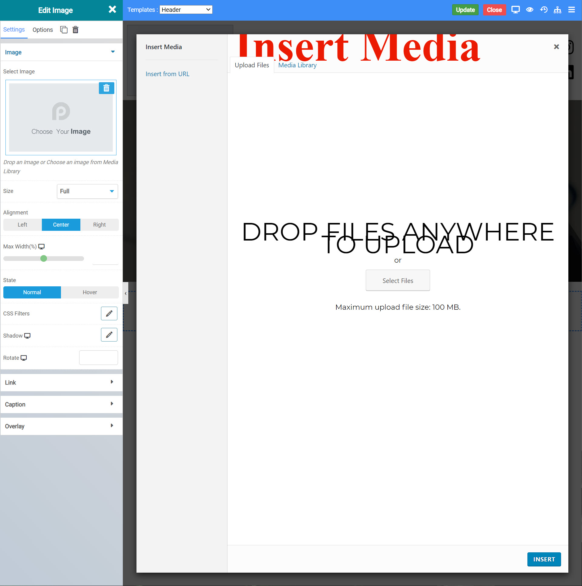 When you’ve finished, click Insert at the bottom left. The image will be inserted into the header which is used on all of your pages.