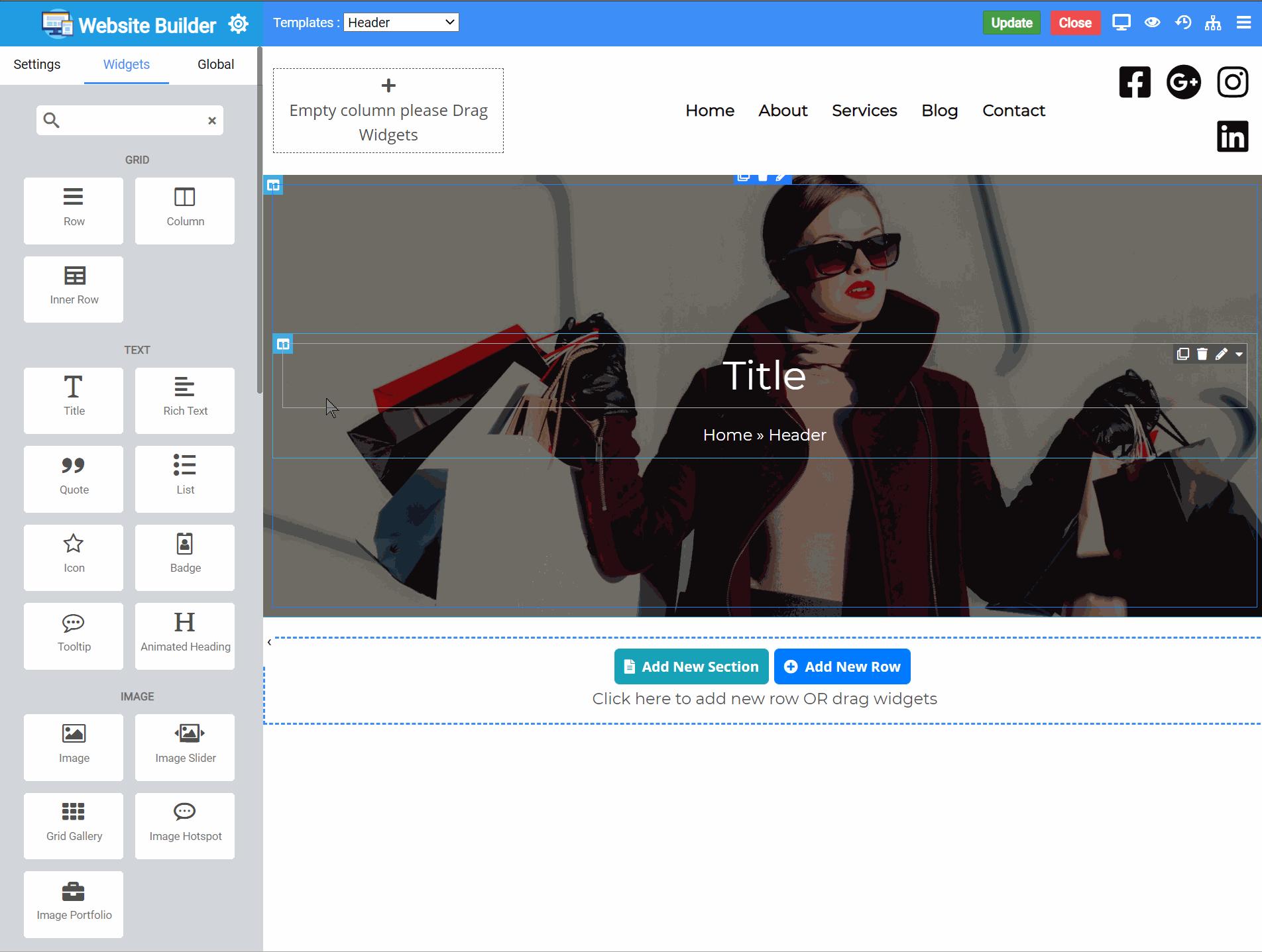 The widgets menu will appear from the left. Choose an Image widget.