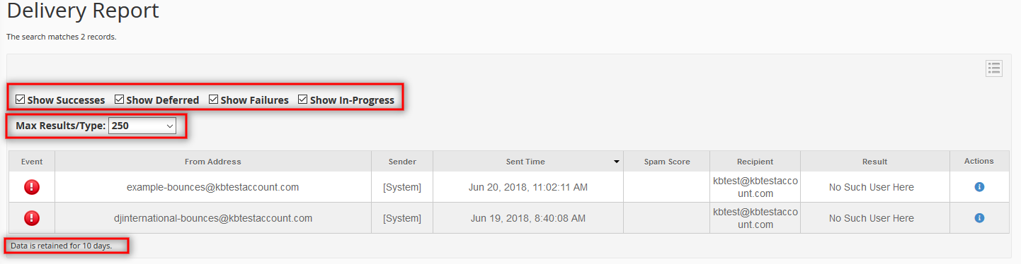 Note: This feature is available only if your hosting provider has enabled the Eximstats in WHM. You may want to contact them if you do not see this information on the Track Delivery page.
