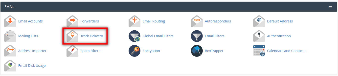 In this article we will cover how to check Email message delivery in cPanel. You can find this feature under Track Delivery in the Email section. It is a very useful tool to use whenever you are experiencing issues with Email delivery from your account.