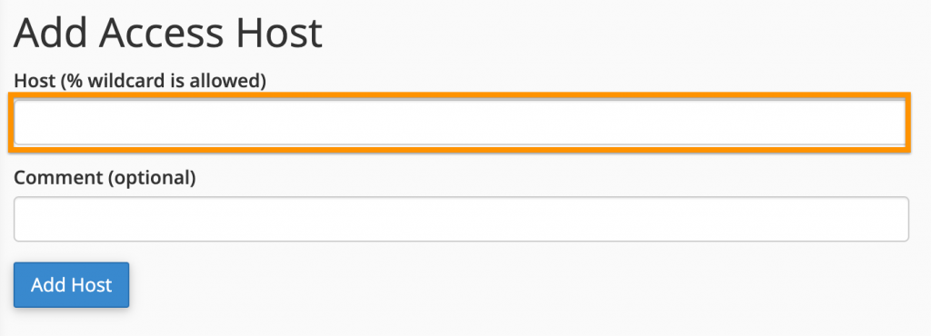 Another interesting feature is the possibility to add the “%” wildcard. This allows you to add an entire IP range to the access hosts list. While it may seem like an easy “fix”, the usage of the % is not advisable, as it presents some security risks.
