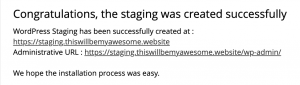 Once the staging has been created, you’ll see a successful message like the one in this screenshot: