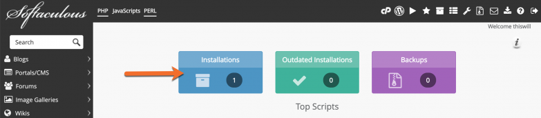 cPanel > Software > Softaculous - Once you’ll see the Softaculous dashboard, click on the Installations box.
