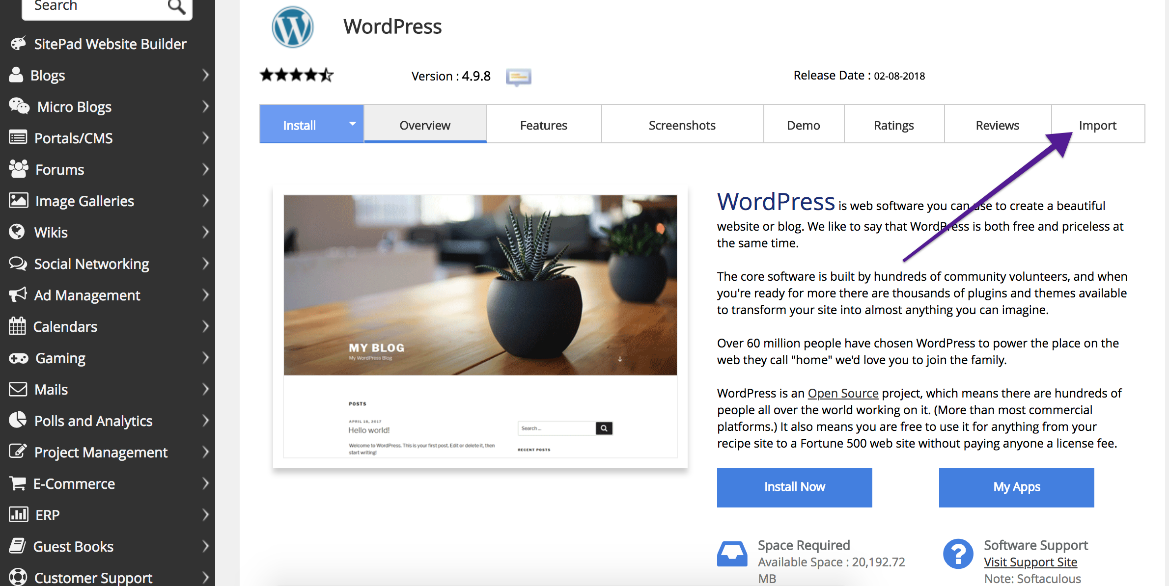How to Automatically Import Your Existing Application Installation in Softaculous
