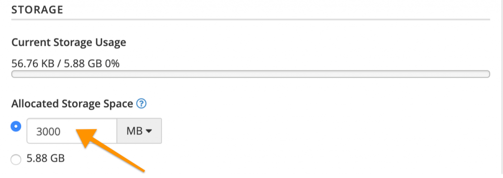 3. In the email address management page, scroll down until STORAGE and enter the value for Allocated Storage Space.