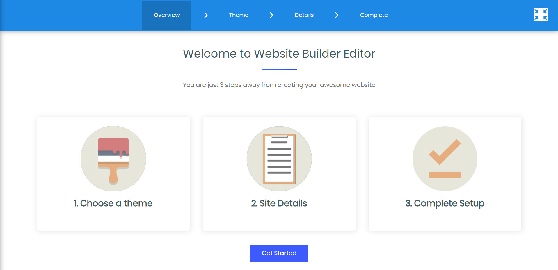 Step 6: Your site will be reset and you will be returned to the initial site setup: