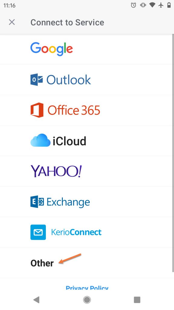 Step 5: Spark will present you with a list of account types. Since we’re adding an IMAP account, tap Other to proceed.