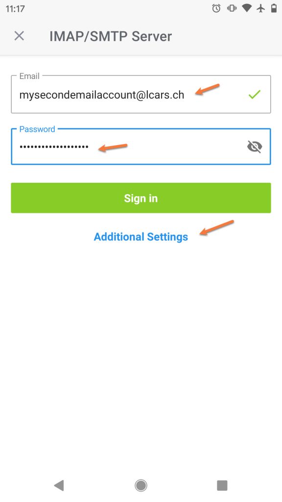 Step 3: On this screen, enter the email address & password for the account you’re adding, then tap Additional Settings.