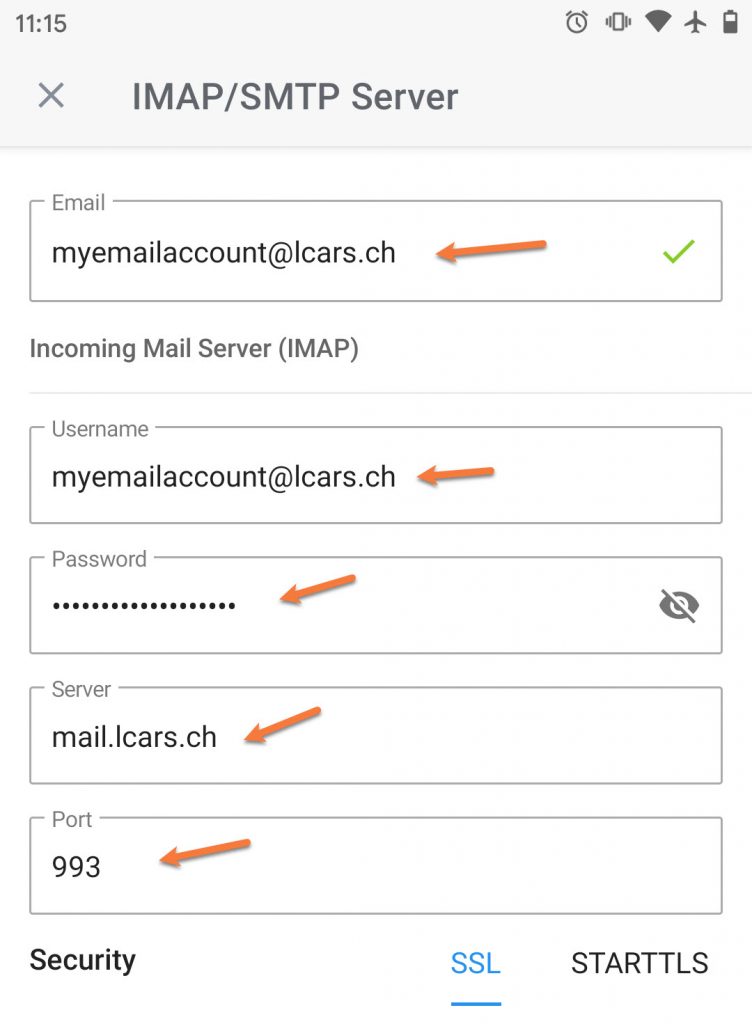 And finally, ensure SSL is selected next to Security. Your settings should look similar to the ones below: