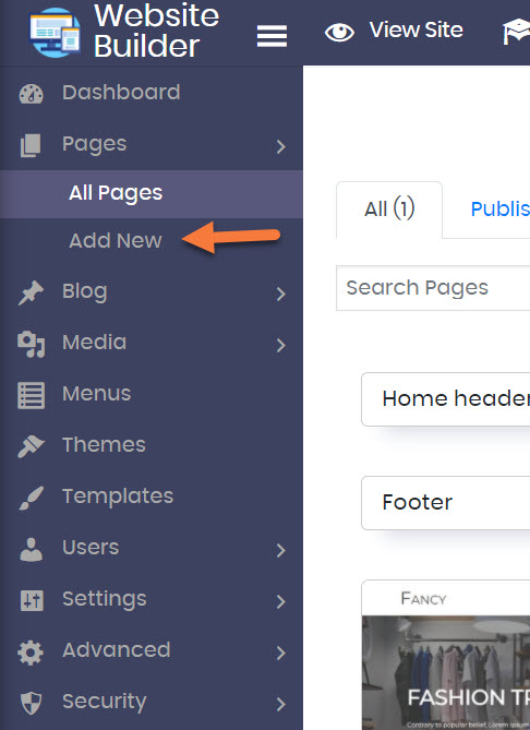 Now, if you are going to insert a Custom HTML widget on a page that already exists, you would select that page and edit it. Since I’m going to do this on a new page, I’m going to click the Add New button, which is located just beneath “All Pages”.