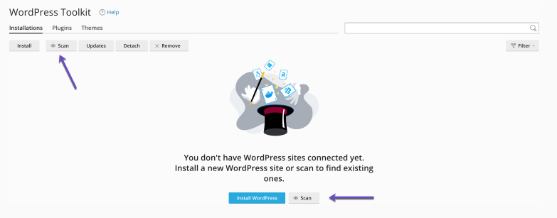 In case you’ve accessed the WordPress Toolkit section in cPanel, and you do not see any WordPress install listed, it means that you have manually installed your application and you need to import it into WordPress Toolkit.
