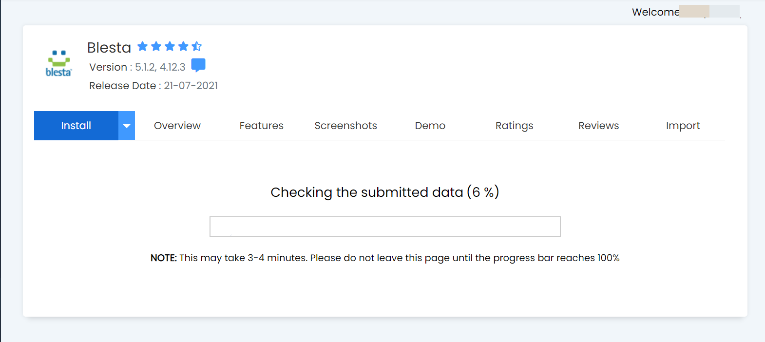 Step 6: Softaculous will review the information you’ve submitted and install Blesta. It typically takes a minute or two as Blesta is somewhat heavy but well optimized.